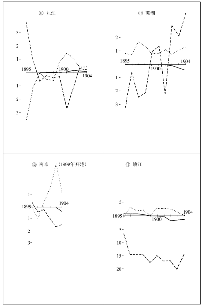 以上各种类型表现出各自特征的时期并不统一。从它们各自的历史发展情况上来看,类型(1)和类型(4)是自古以来就一直存在的贸易港口类型。即使是类型(2)和类型(3),如果从各个类型之提取出某个贸易港口的话,可以发现它同样能够还原为拥有悠久历史的类型(1)。但成为沿海沿江大型货物集散地的时期却是18世纪60-70年代,这是因为以扬子江为中心的内陆河流航运出现了三个变化:(1)沿江六港贸易手续的简单化;(2)扬子江贸易在上海征税的集中;(3)因蒸汽船引进引发的英美系航运公司与中国航运公司(轮船招商局)之间的竞争,及由竞争导致的扬子江贸易的扩大等,而这些变化又促进了贸易的发展。