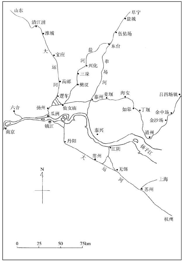 (2)与(1)在性质上相同,镇江是经由大运河来向远隔地的中心地配送货物的,山东省的济宁、兖州则与它大致相当。