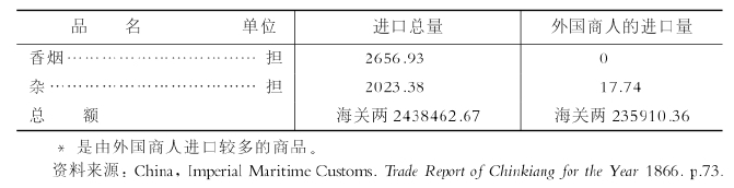 关于镇江的进口商品情况,以1866年为例,如表4-24所示。