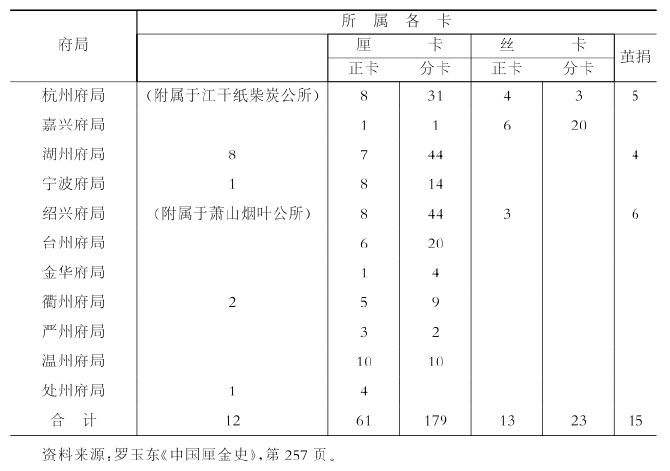 表5-4 浙江省的厘金局、厘金卡表(光绪二十四年以后)