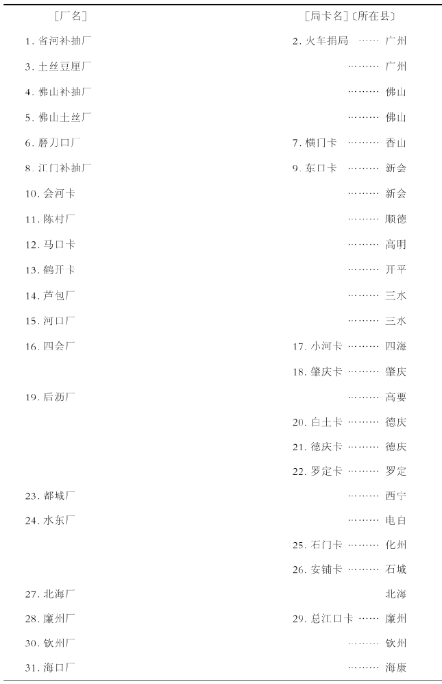 表5-6反映了广东省的厘金场、分场、厘卡分布情况(请参照地图4-5)。包括潮州一带沿海在内,主要分布在珠江沿岸。将其与统属于绍兴府的厘金局、厘卡相比较,可知广东各县都有厂,而且厘卡与其并立具有独立性。表5-7为苏州牙厘总局管辖下的厘卡和巡卡,与绍兴府有着共同之处。