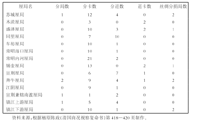 表5-7 苏州、常州、镇江各厘局管辖的分卡