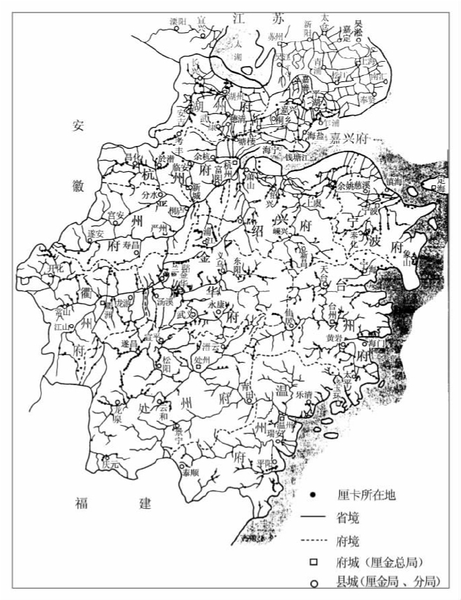 地图5-1浙江省厘金总局、厘金局、厘卡所在分布(20世纪初)