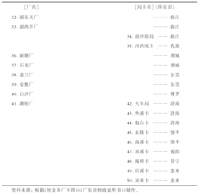 表5-6 广东东省厘金厂、厘金卡