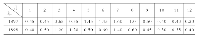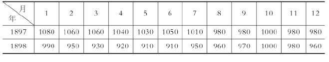 使用帆船向琼州(海南岛)紧急运送了价值85080海关两的大米,而用于出口的562546海关两部分则全部运送到了香港。……因为该港缺乏银行机能,进口出超部分一般使用银元来抵补,但商人们却办妥了发往香港的汇票。过去两年间的30日支付(并非一览支付)票据的贴现率如下,同期农民、小商人使用的通货——铜钱对墨西哥元的交换比率也如下。