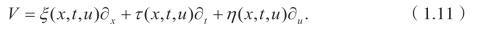 这里 ∆1=ξux+τut−u。这是与经典李群方法唯一区别的地方,其余过程与经典李群方法类似,就是求无穷小生成元。