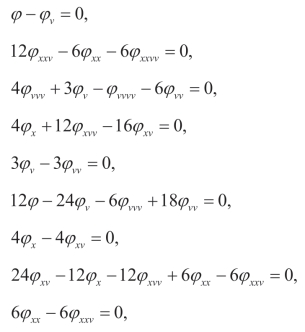 容易验证势方程不是自治的,因为将v代替q以后,得不到原方程。现在为了寻找显式形式的 ϕ(x,t,v)≠0