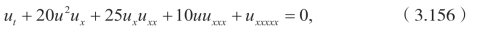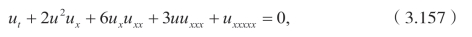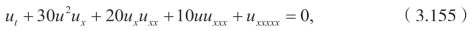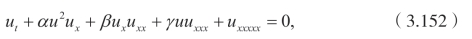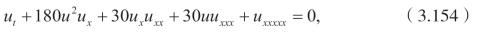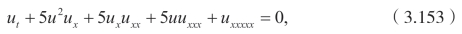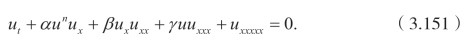 这里 α,β 和γ都是非零常数。显而易见,该方程有两个色散项uxxx和uxxxxx。选择不同的参数 n,,α β 和 γ,可以得到不同的五阶KdV 方程,比如 Sawada-Kotera(SK)方程