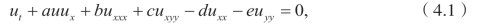 其中a,b,c,d 和e是常数,而x,y 和t是自变量,表示空间和时间变量,这里u(x,y,t)代表因变量。关于该方程更多的讨论请参见文献[101,102]。