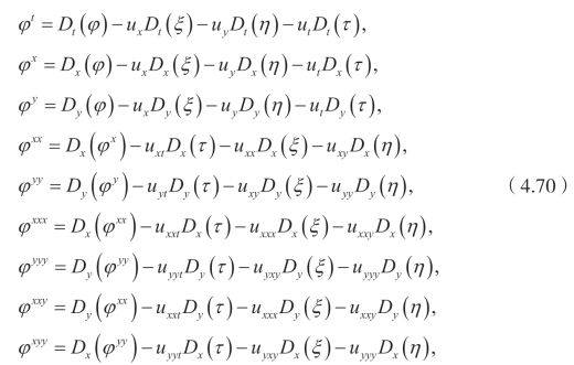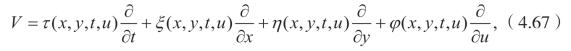 目的是求向量场的系数函数τ(x,y,t,u),ξ(x,y,t,u),η(x,y,t,u) 和 ϕ(x,y,t,u)。