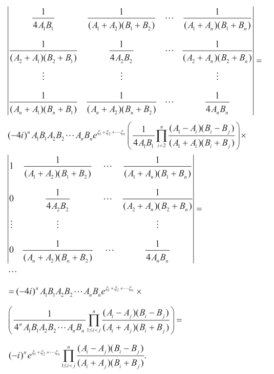 为了得到N-孤立波解的矩阵表示,考虑下面的关于λ 的行列式