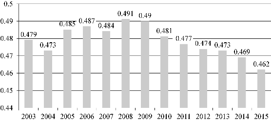 图1 我国2003—2015年基尼系数变化趋势[1]