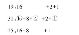 三堆火柴结合起来看,除了多出一个16、一个4以及一个1之外,其他2的次方数都成对出现。因此我们面对这种局面时,应该从31根火柴的那堆中一次性取走21根火柴。这样,我们就给对手制造了19-10-25这样一个平衡局面,而对手就注定要失败了。继续上例,假设此时对手从19根火柴中取走15根,则此时你面对的是4-10-25: