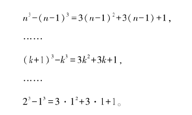 这个证明方法是一种“有限差分法”,用这种办法作例行推导可以解决很多相似的问题。例如,对立方数我们也有公式: