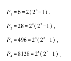 并且在上述每个完全数表达式中,p都是素数。此外,在p=2,3,5,7之后,我们跳过11,指出p= 13对应着下一个完全数。所有这些事实在完全数的研究中都扮演着重要的角色。