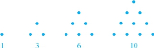 相似地,所谓“三角形数”“五角形数”“六角形数”也都曾受到数学家或数学爱好者的关注,它们通常都用点阵来描述。例如,前四个“三角形数”可以用如下图形表示:
