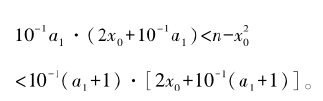 (x0+10-1·a1)2<n<[x0+10-1·(a1+1)]2。