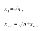 用数学归纳法不难证明,这个数列是递增的,并且它的每一项都小于n+1。因此根据前面我们提到的“单调有界原理”,数列{xn}是有极限的。当然,这个极限就是我们这里的奇怪根式的值。如果我们假设数列{xn}的极限为x,则从数列的递推定义式我们可以得到:
