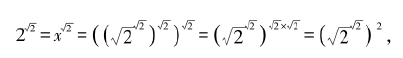 一串无穷的根式我们用数列极限的形式解读了它的涵义。那么,像22这样奇怪的表达式有意义吗?如果我们令x=22,那么根据对数运算公式,就有