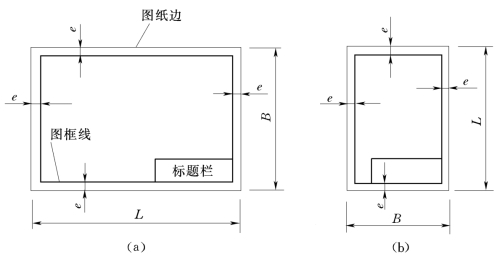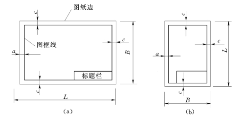 绘制图样时,必须在图纸上用粗实线(在图线中介绍)画出图框,图形只能绘制在图框内。图框格式分为不留装订边和留有装订边两种,但同一产品的图样只能采用一种格式。