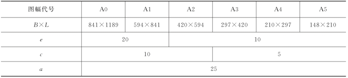 图纸幅面(简称图幅)即图纸的面积,图纸的短边×长边用B×L表示。制图标准规定了6种不同尺寸的基本图幅,如表1-2所示。绘制技术图样时,应优先选用基本幅面。