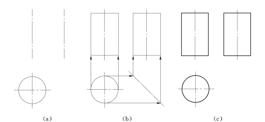 圆柱体投影图的画法如图3-12所示。