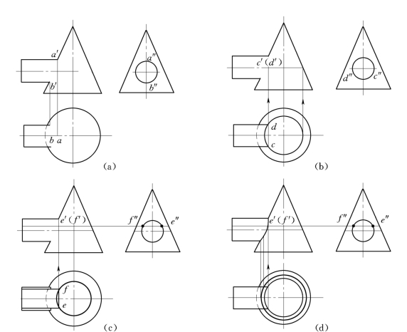图4-11 圆柱和圆锥相贯的相贯线求法