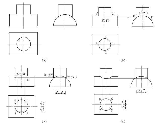 (2)求点。相贯线上点是两立体表面的公有点,因此求相贯线就是要求出两立体表面的一系列公有点。