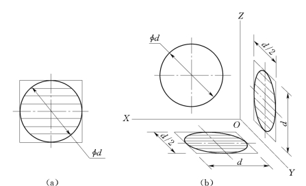 图5-16 平行坐标面的圆的斜二测的画法