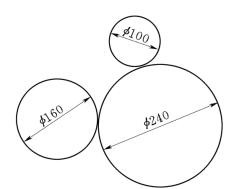 【例11-9】 利用圆命令绘制如图11-16所示的图形,其中第一个圆的圆心在(100,100)处,圆的直径为160,第二个圆的圆心在(250,250)处,圆的直径为100,第三个圆与前两个圆相切,且直径为240。