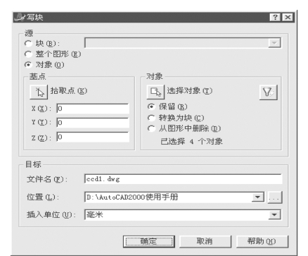 2)在“写块”对话框中,指定要写到文件的块或对象。