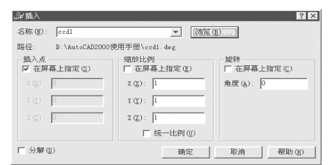 ·插入点的X、Y、Z坐标,以便AutoCAD知道应以哪个点为基准放置图块。