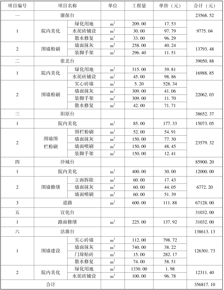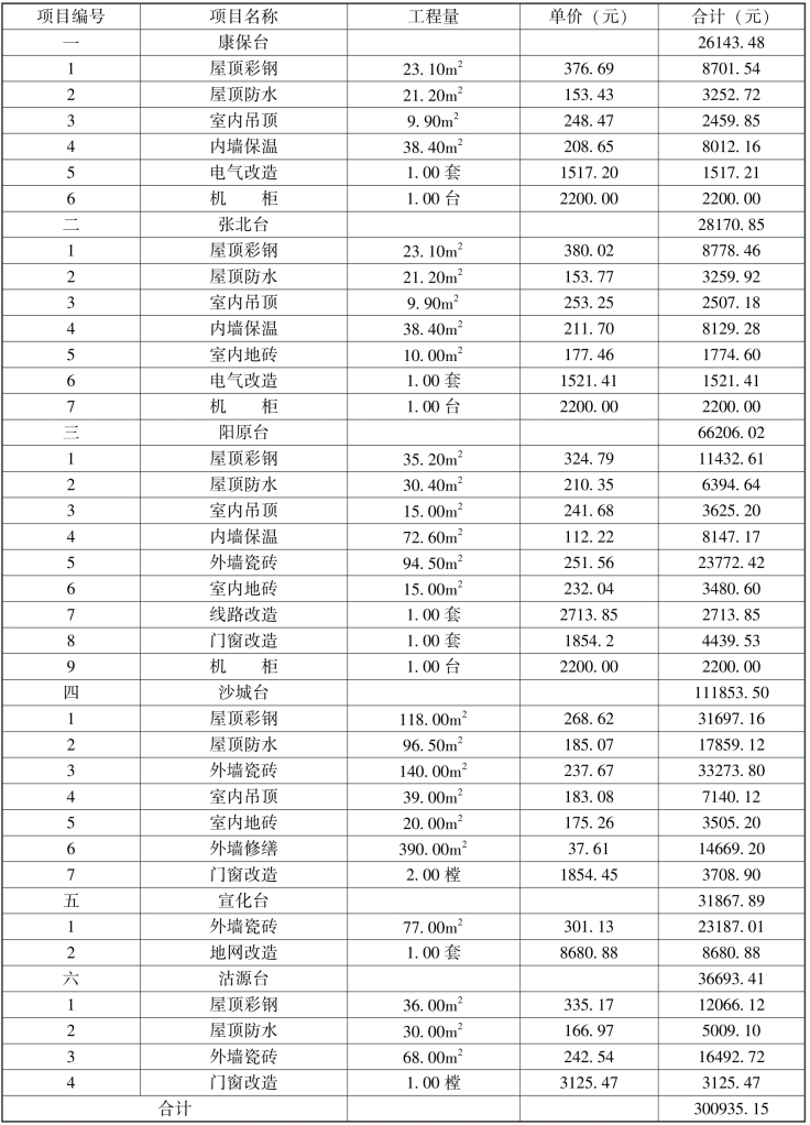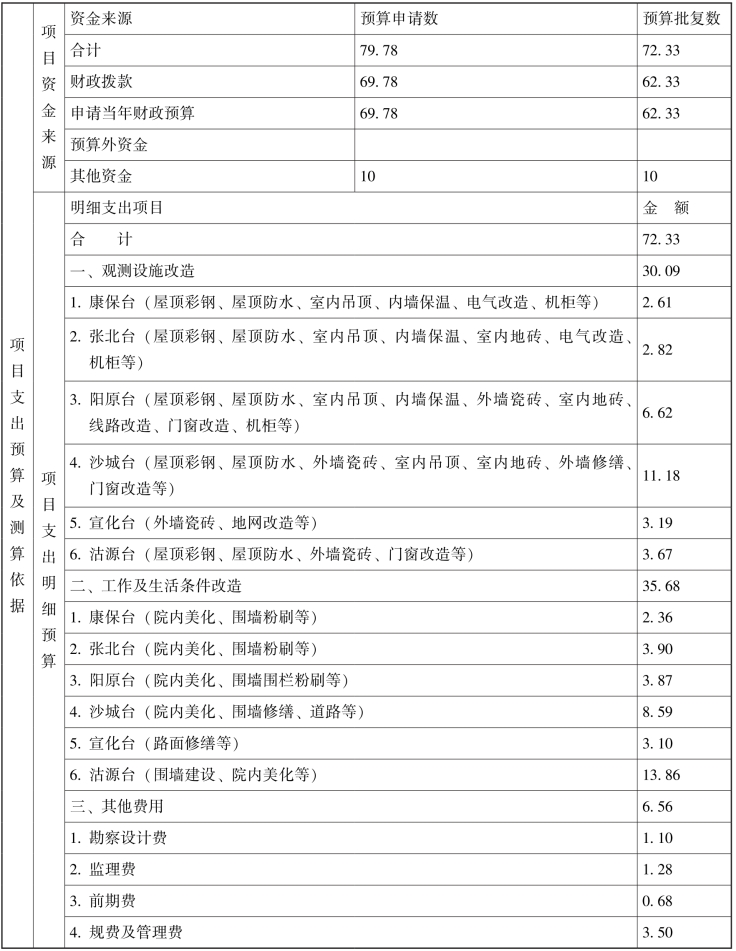 表2 张家口中心台优改项目支出预算明细表 单位:万元