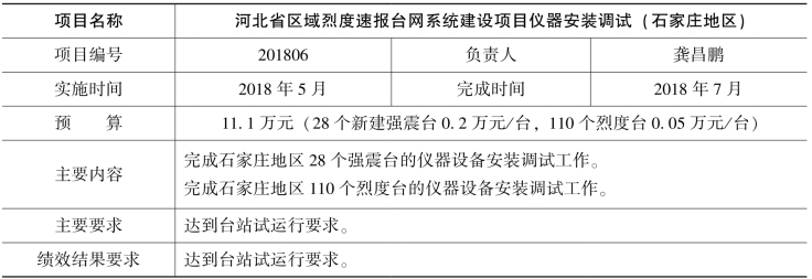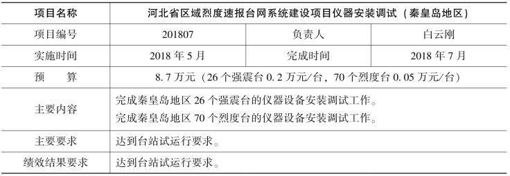 根据河北省区域烈度速报台网系统建设项目工作安排,经研究,决定开展石家庄和秦皇岛地区强震台和烈度台的仪器安装调试工作,现将项目任务书下达给你们,请认真组织,合理安排,专款专用,规范管理,加快项目执行,提高经费使用效益,确保项目顺利实施。
