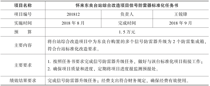 经局研究批准,现将怀来东良台站综合改造项目信号防雷器标准化任务书下达给你,请你单位认真组织,合理安排,专款专用,加快项目执行,提高经费使用效益,确保项目顺利实施。