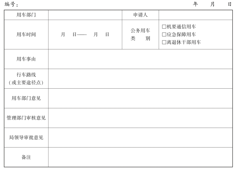 河北省地震局机关公务用车使用申请单