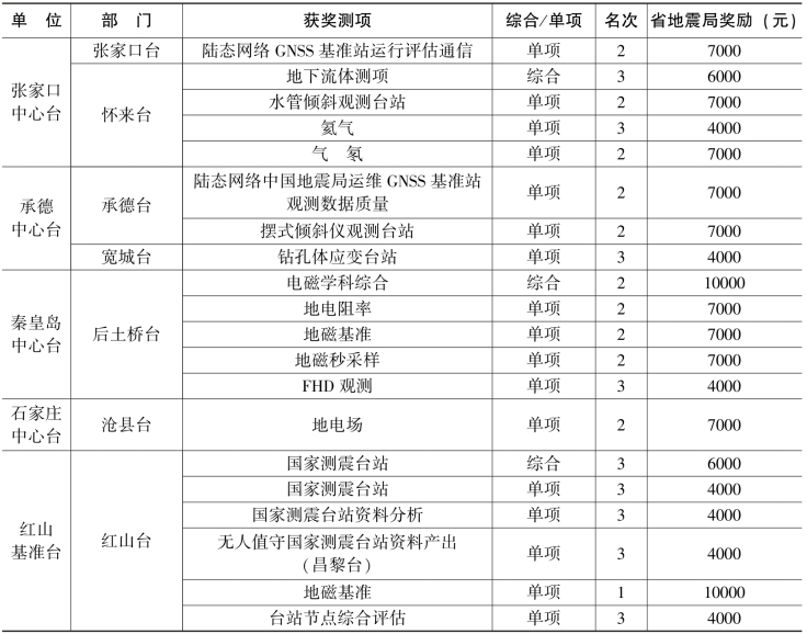 河北省地震局对荣获全国地震监测预报工作质量评比前三名的台站予以奖励