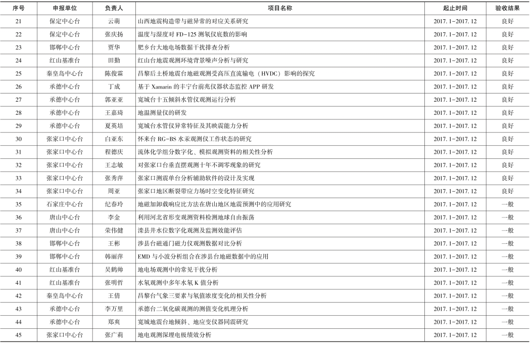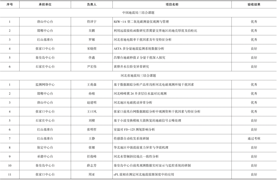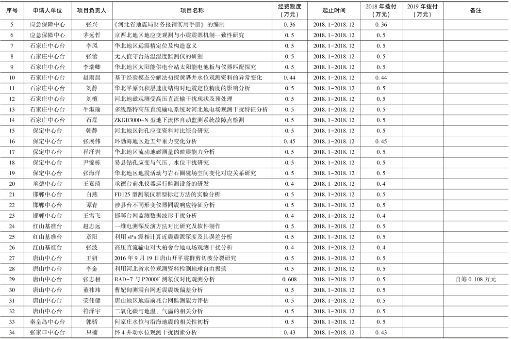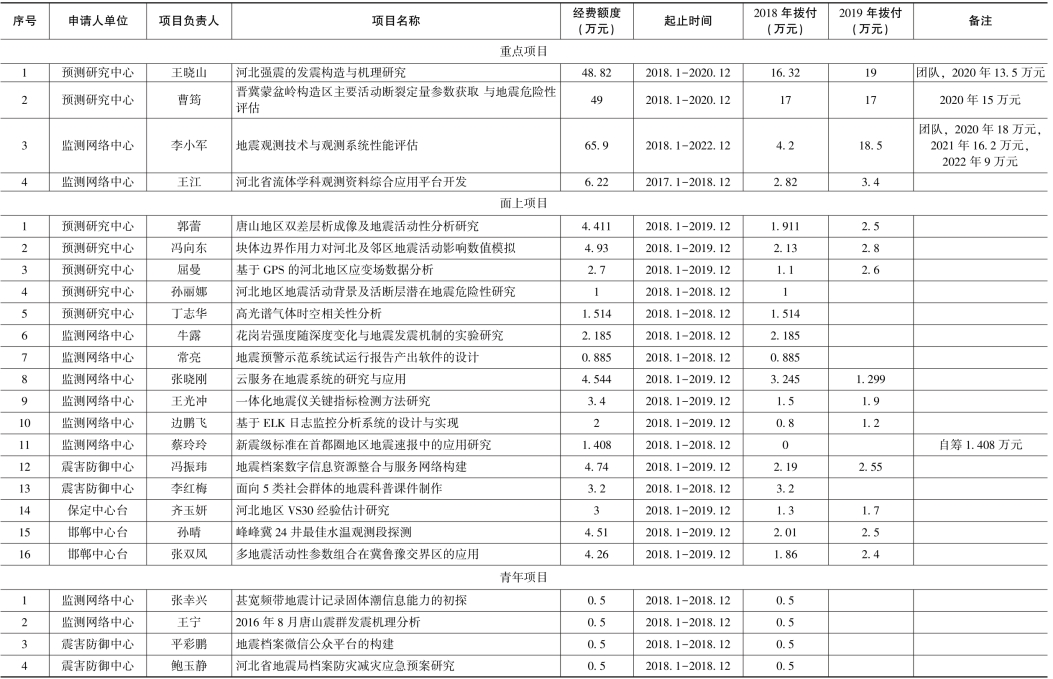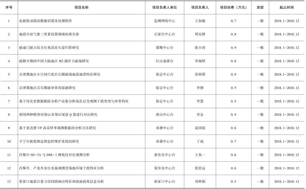 2018年度河北省地震局监测、预测、科研三结合课题名单