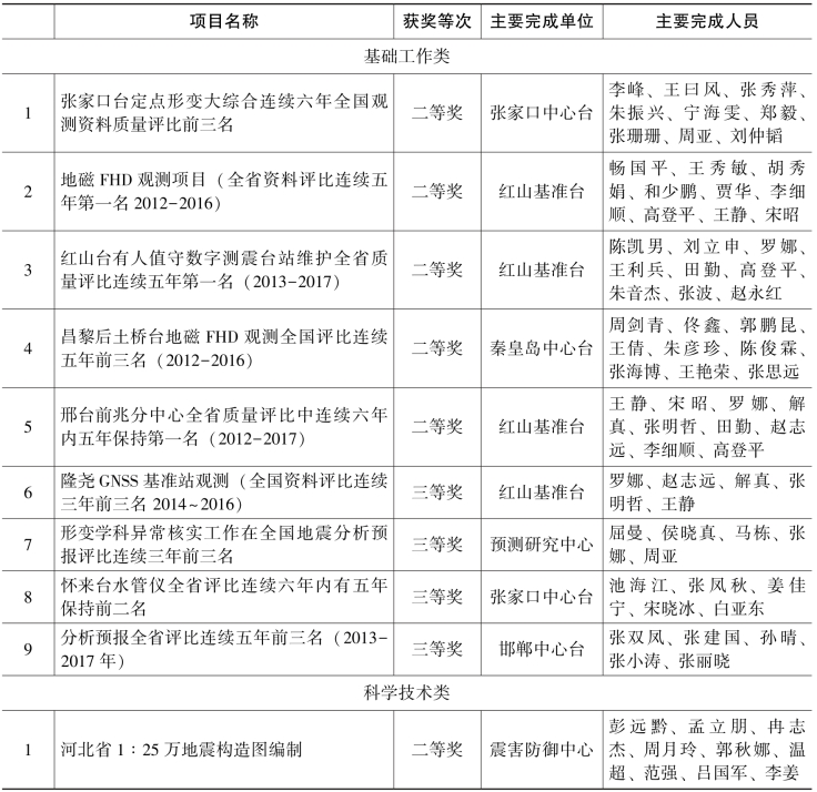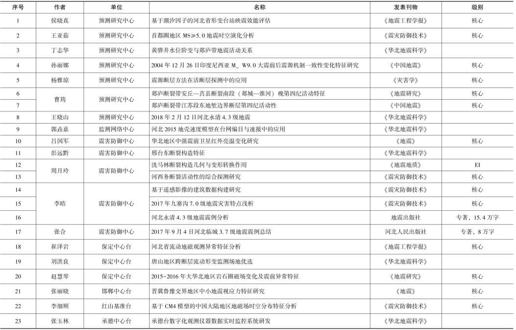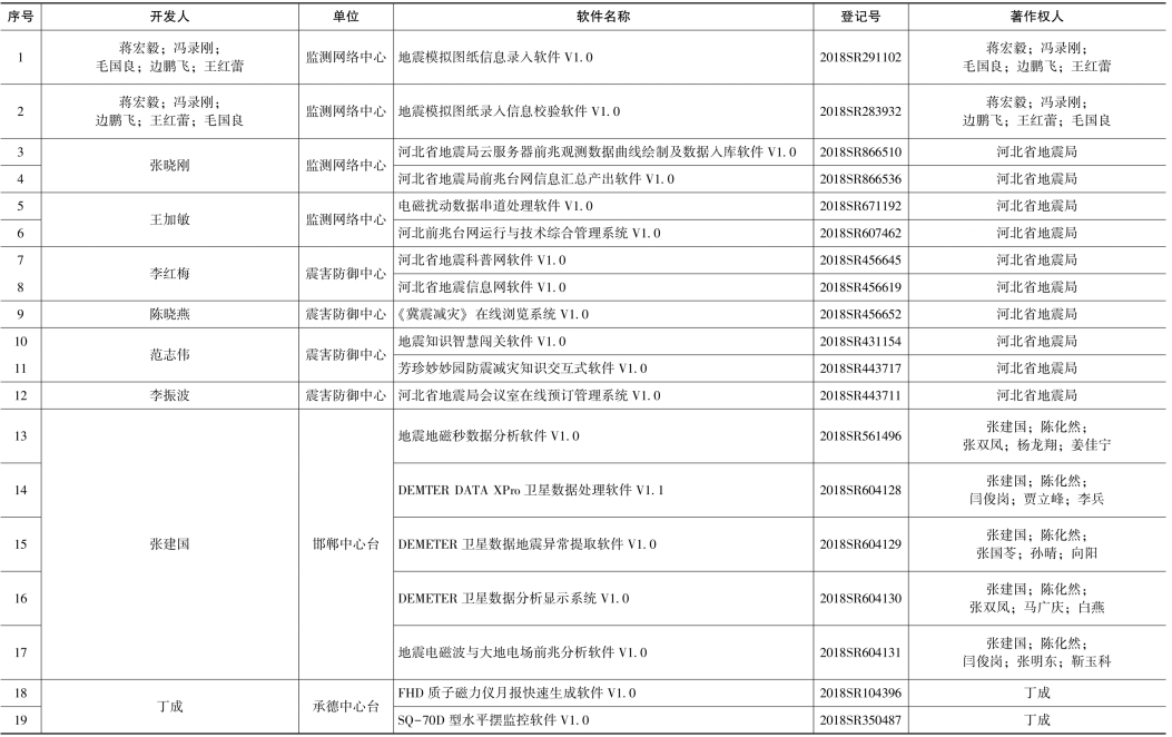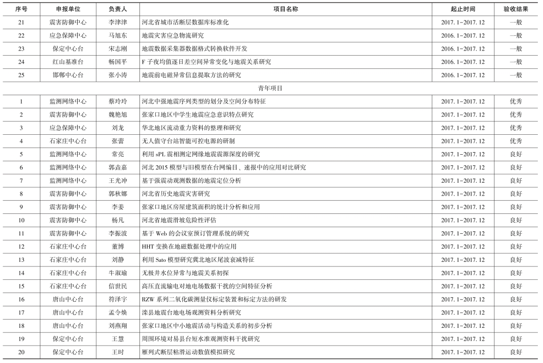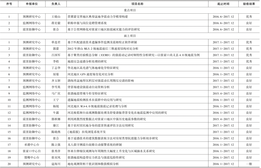 2018年度河北省地震局监测、预测、科研三结合课题名单