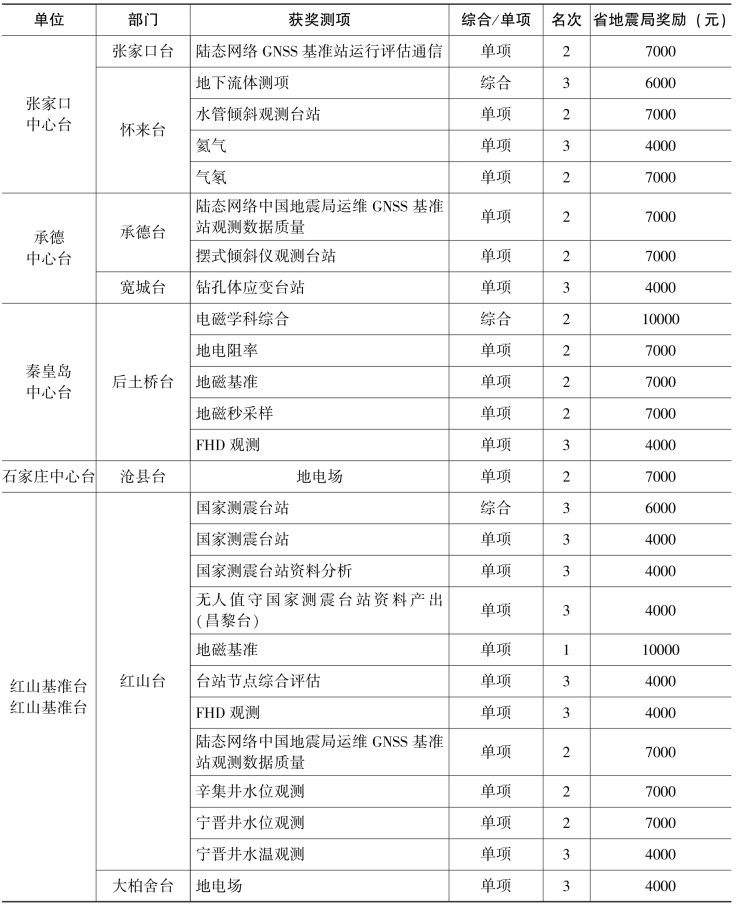 河北省地震局对荣获全国地震监测预报工作质量评比前三名的台站予以奖励