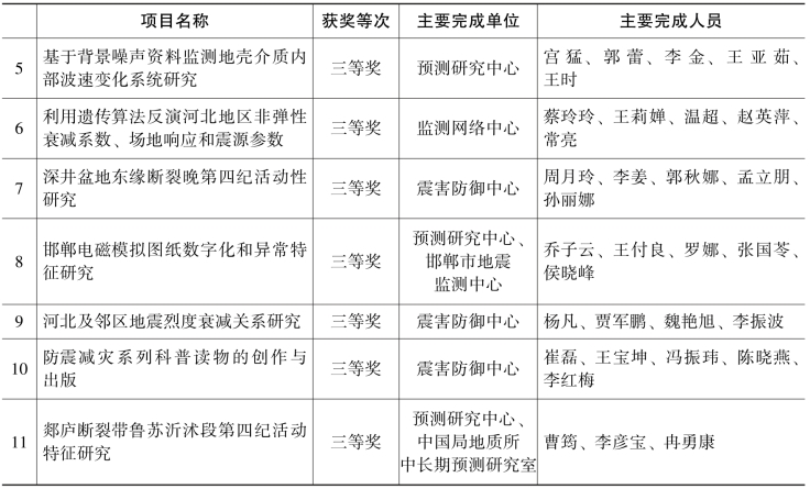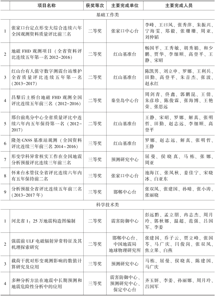 河北省地震局2018年度防震减灾优秀成果奖列表