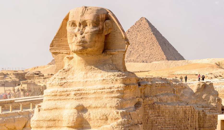 与金字塔同样闻名世界的还有屹立在胡夫金字塔旁边的狮身人面像。狮身人面像在古埃及人心中就是黎明之神。几千年来,它一直面朝东方,迎接日出,眼睛都不眨一下。