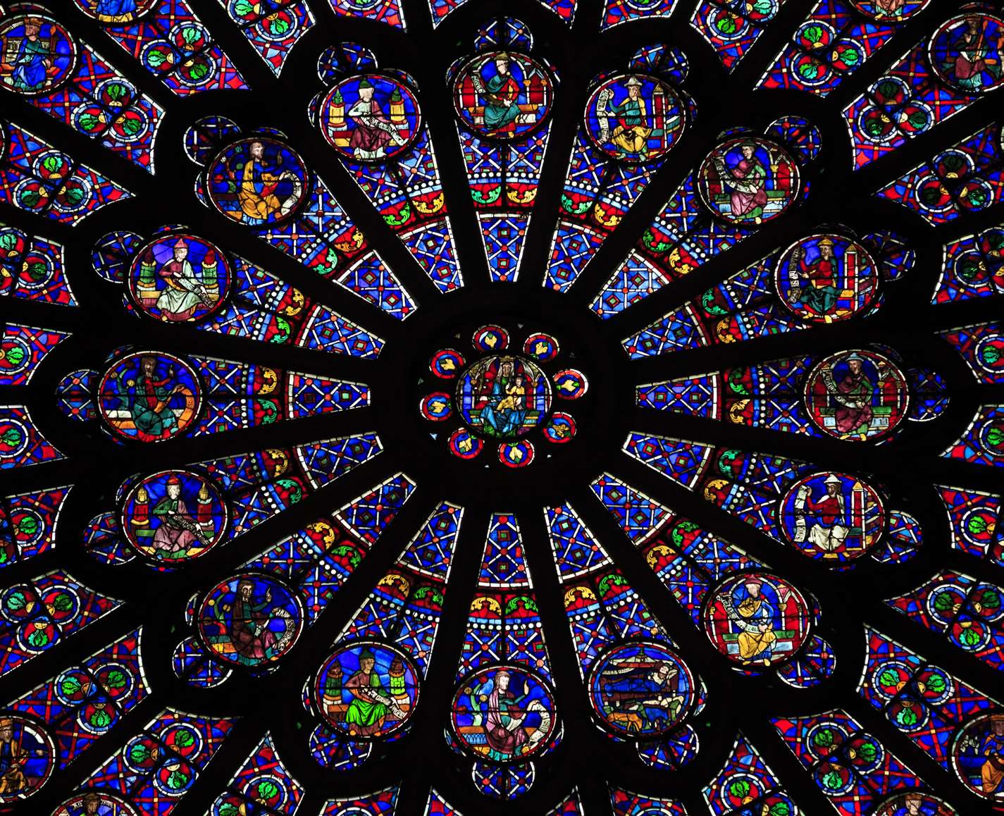 与其他经典的哥特式建筑一样,巴黎圣母院也装饰着数量众多的彩色玻璃窗,这些窗户造型复杂,其中最恢宏的就是被世人称作“玫瑰玻璃窗”的大窗子。“玫瑰玻璃窗”的直径达 9.5米,上面刻满了圣经故事,将这座教堂装点得神圣而具有韵味。