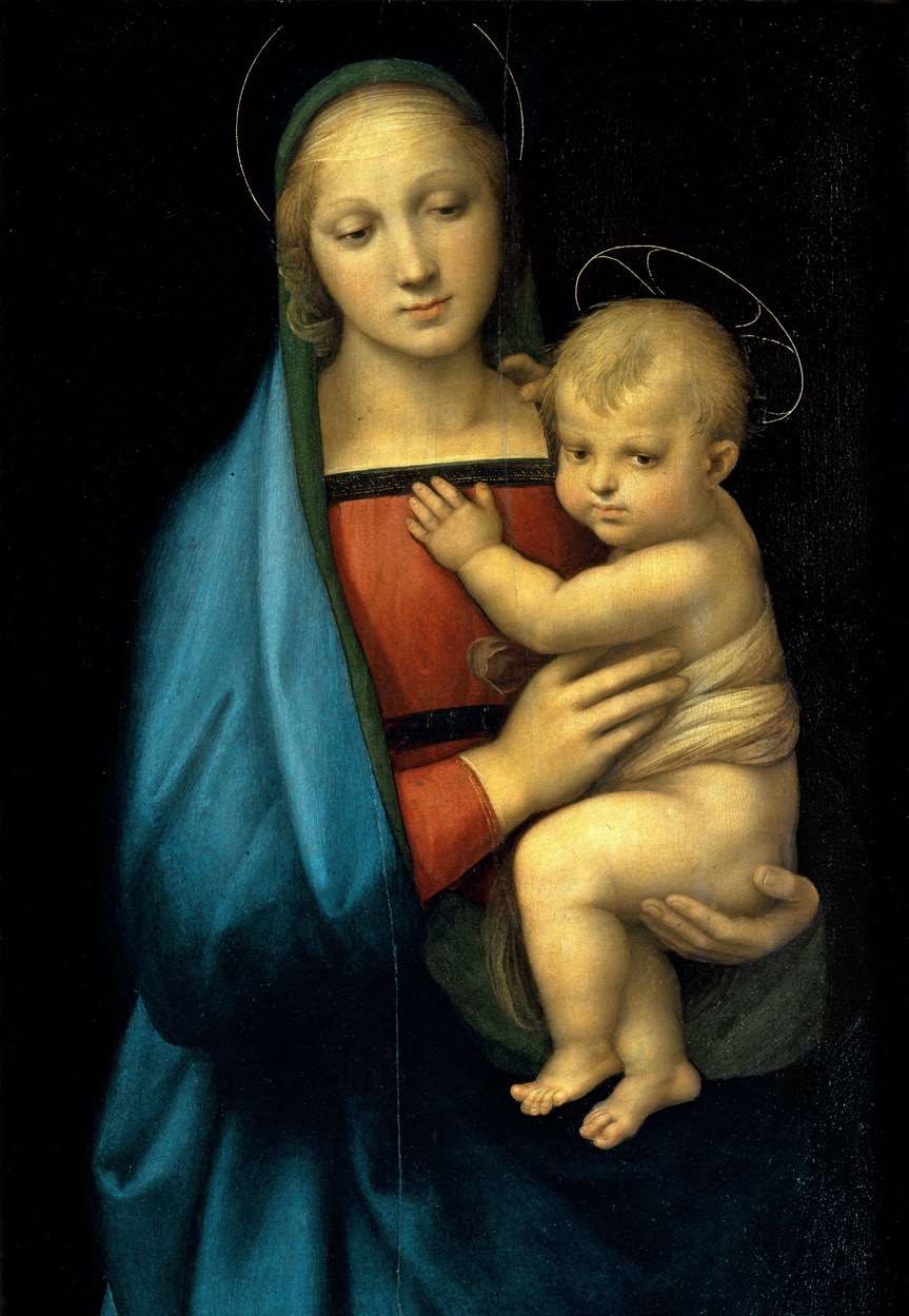 拉斐尔通过细细揣摩达·芬奇的作品,学会了他的构图和用色,又从米开朗基罗那里学会使用干净、简练的线条,并且发展出了独特的风格。他画了很多圣母像,《大公爵的圣母》是他著名的画作之一。