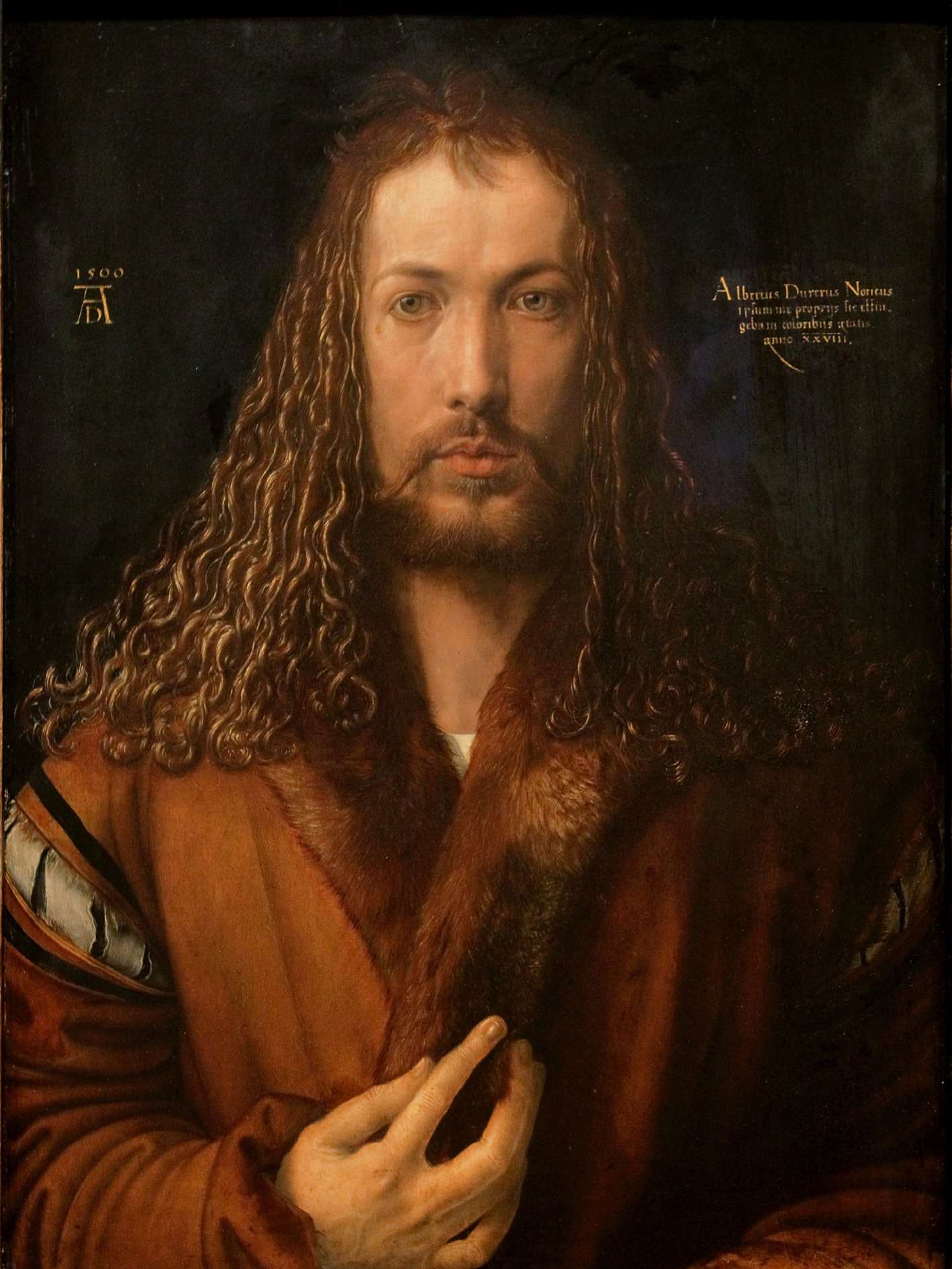 29 岁时,丢勒创作了他最经典的一幅自画像:《皮装自画像》。