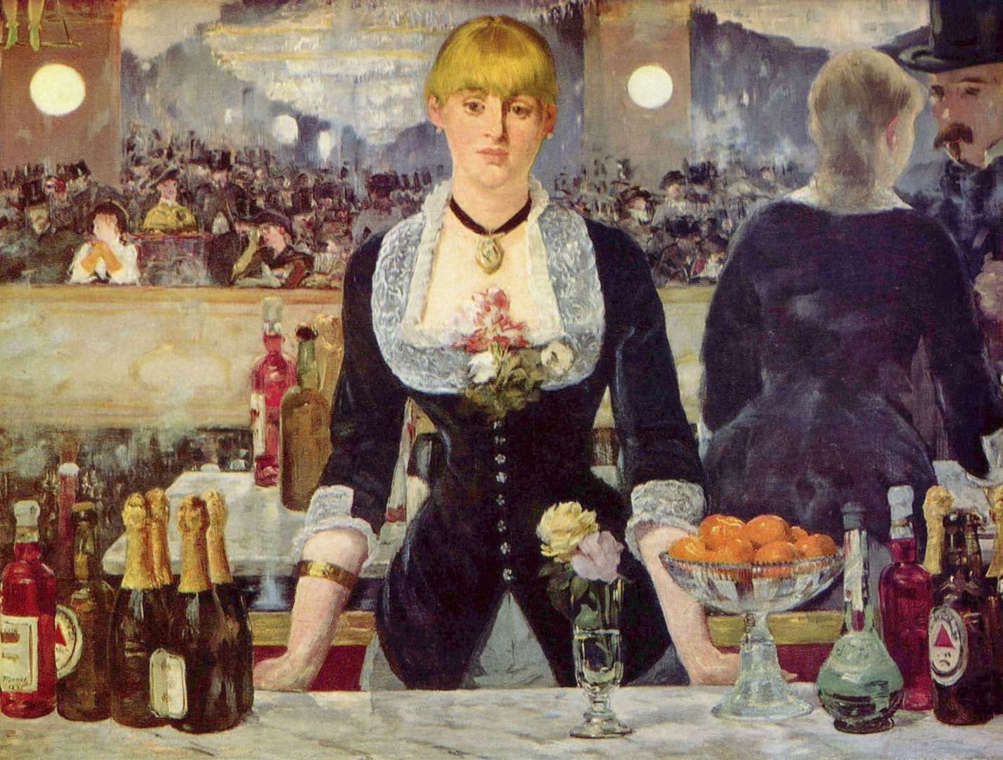 1882 年,马奈在当年的艺术沙龙上展出了他生前最后一幅作品《女神游乐厅的吧台》,并获得极大的成功。