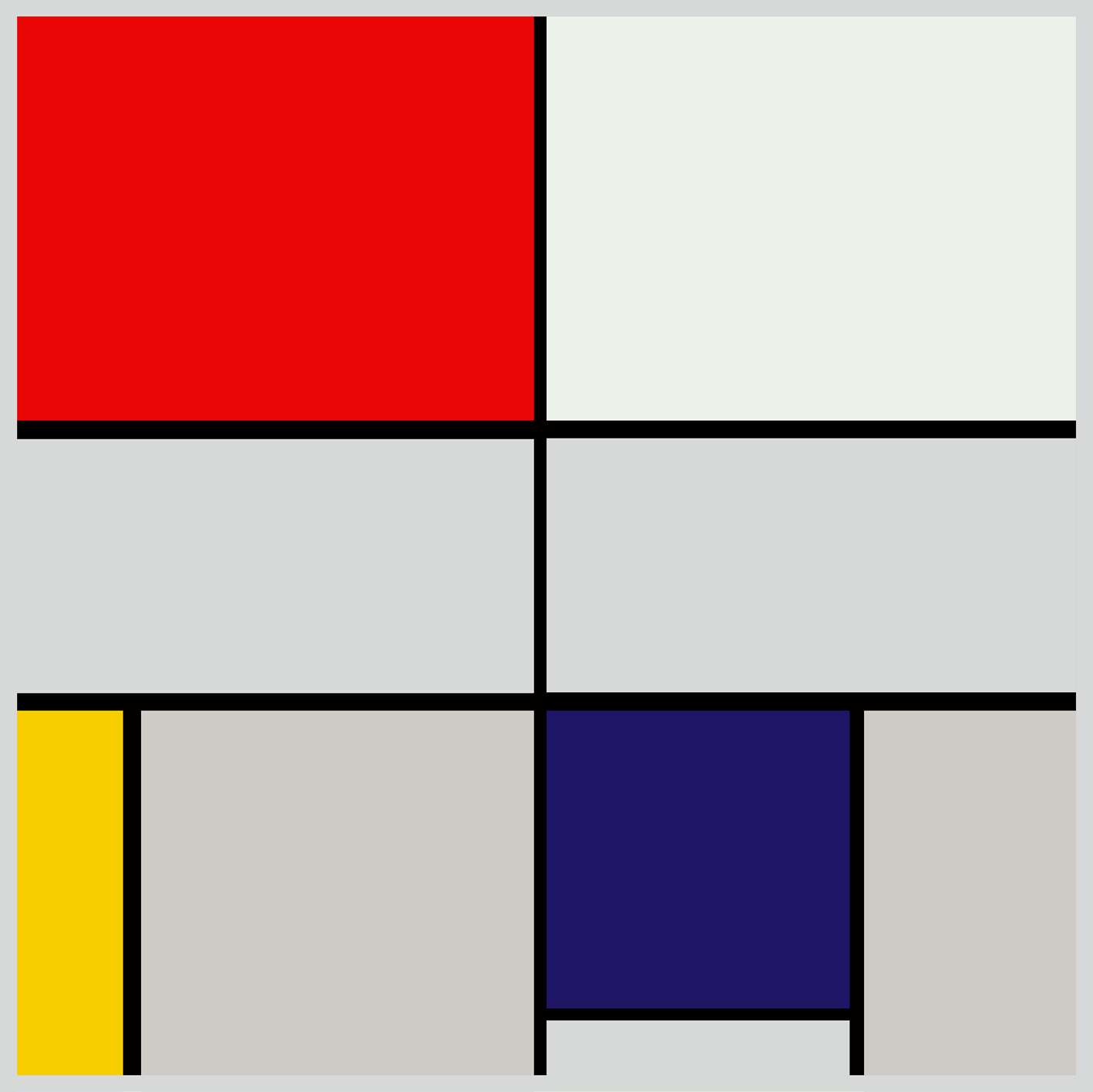 蒙德里安追求的是极致的平衡,他通过大小不一的色块和水平与垂直的线条,凸显了里与外的平衡、个体与群体的平衡、自然与精神的平衡。