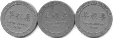 单程票除了可采用磁卡或薄型非接触式IC卡外,还可采用筹码(TOKEN)。天津地铁1号线、南京地铁1号线和武汉轻轨均采用筹码型单程票(如图4-4所示)。TOKEN的采购成本较低,使用次数可达1000次,每次的使用成本很低。此外,TOKEN的回收机械简单、可靠,分拣可直接在检票机上完成,车票可在车站内循环。筹码型单程票的缺点是不适宜作为商业广告的载体。