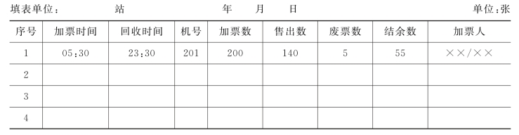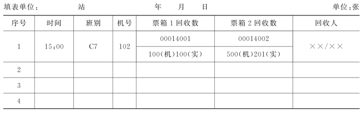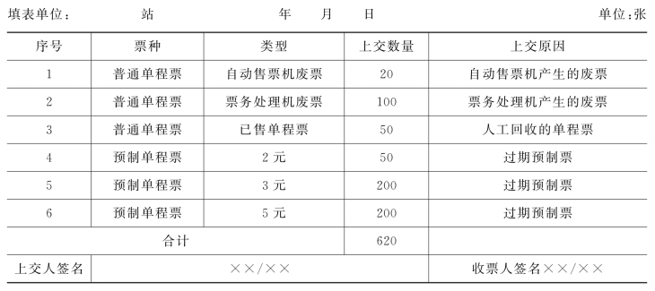 上交车票时需要填写上交单(示例见表4-7),交接双方签字确认。