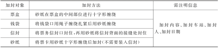 (1)车票可以根据其种类、性质等需要,使用特制票盒、钱袋或票务专用信封等予以加封,也可以使用封条直接加封。